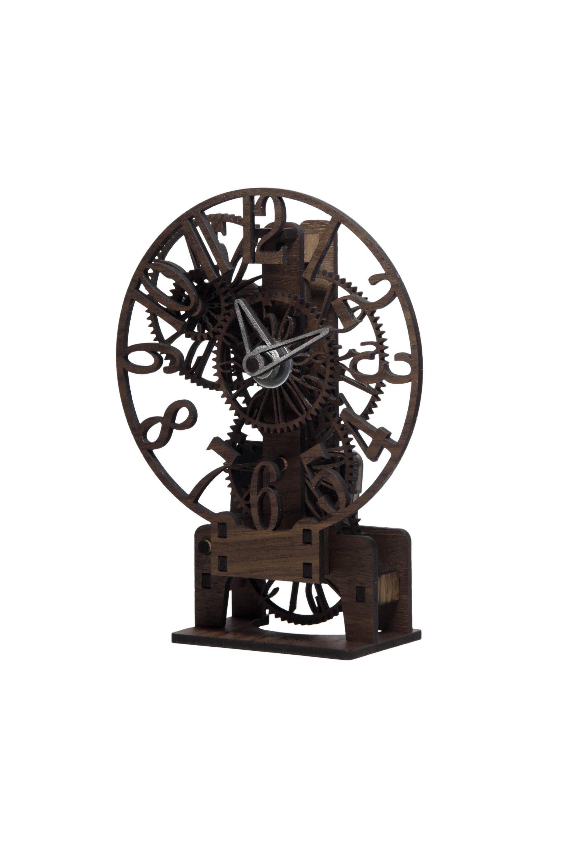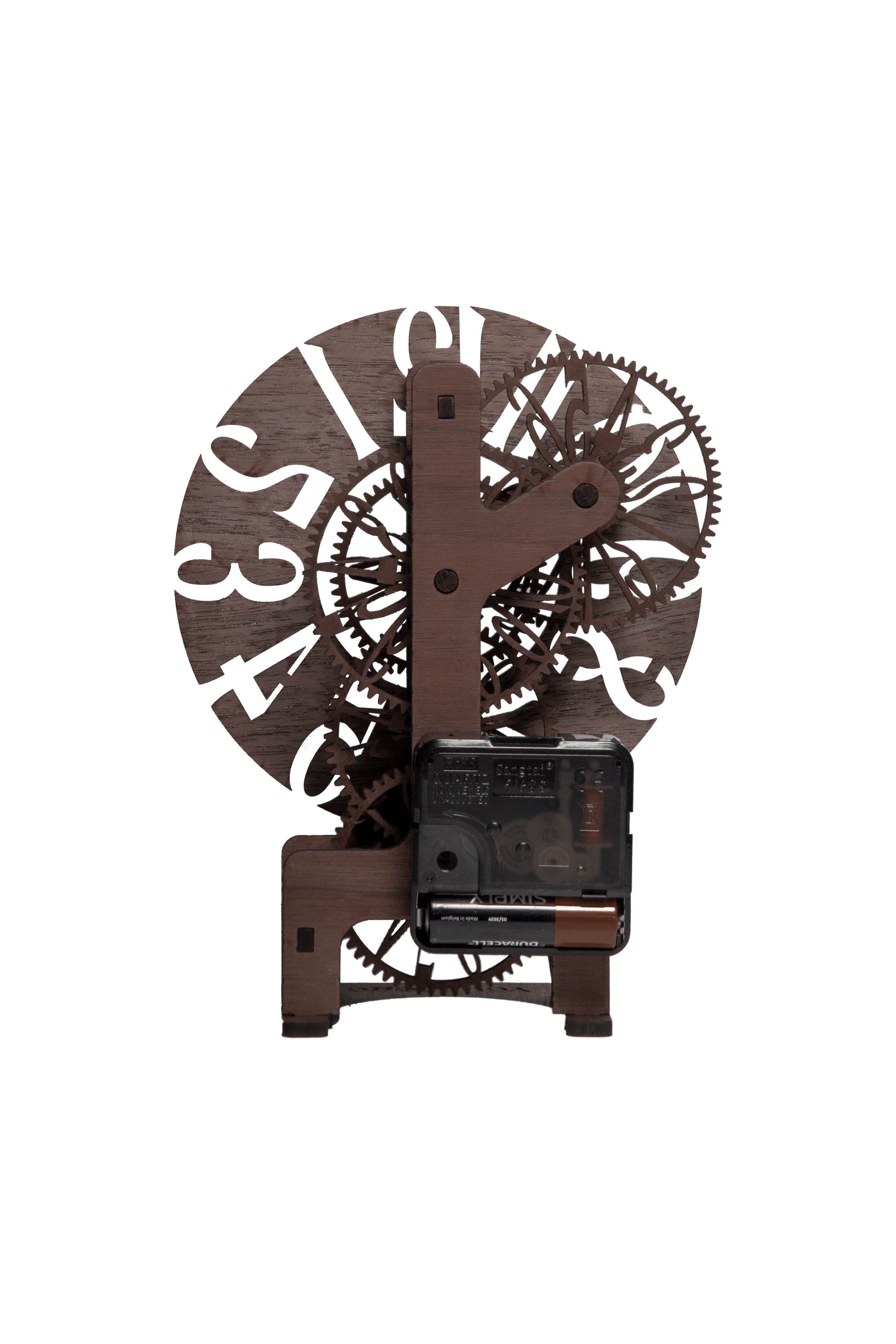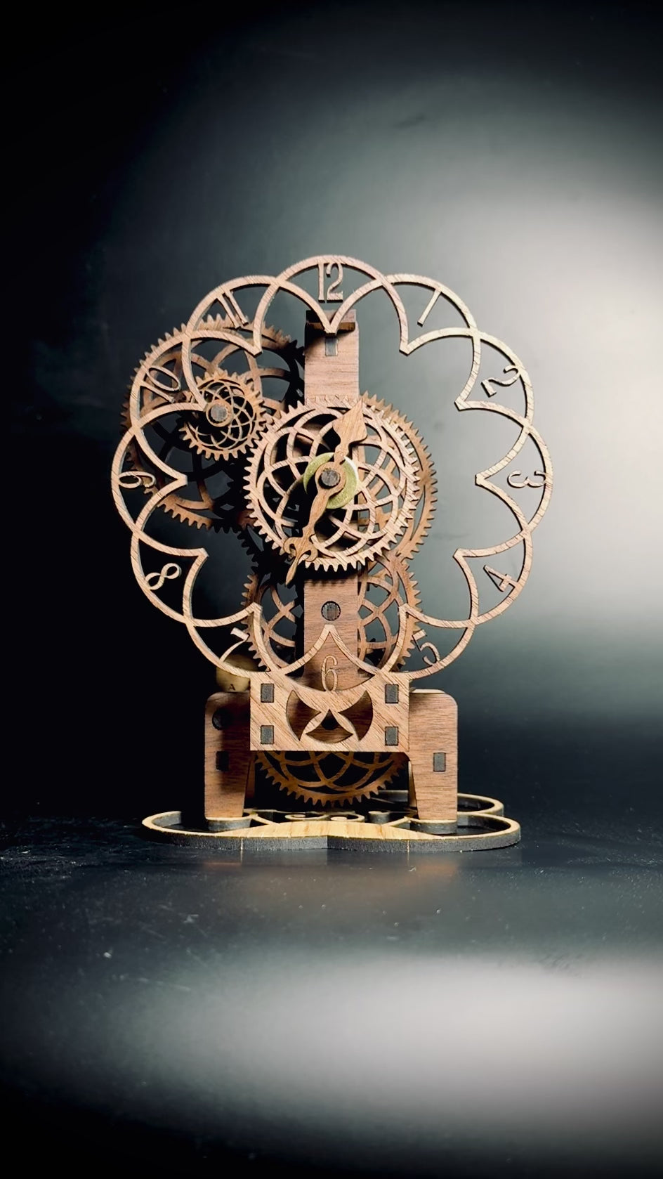 This elegant modern gear clock reveals every cog in action. Designed for those who appreciate both engineering and aesthetics, this buildable wooden timepiece is laser cut, click-fit, and fully functional.