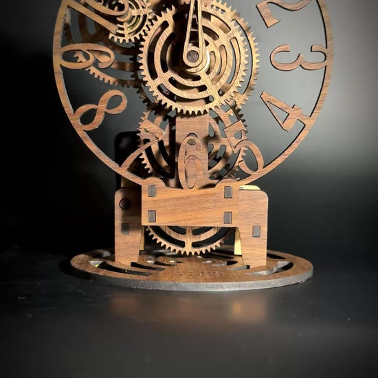 This bold gear clock features large, prominent numerals that frame the open mechanism. Designed for those who appreciate both engineering and visual impact, this buildable wooden timepiece is laser cut, click-fit, and fully functional.